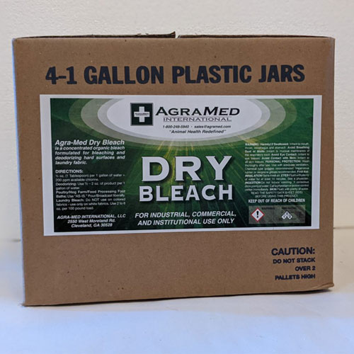 Dry bleach powder that can be used as a biosecurity measure as well as for bleaching and deodorizing hard surfaces.