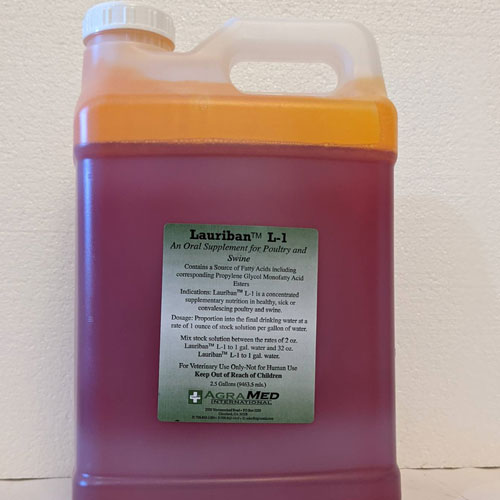 An oral supplement for poultry and swine that contains a source of fatty acids.